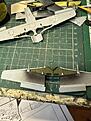 Wings now on and the two panels on the top of the fuselage are fitted . The Airfix kit features machine guns on the nose - the Eduard kit has these faired over and the decal option i’m intending to use for this from the Eduard kit also features faired over gun troughs . Do for the second build in a row cocktail sticks were employed !