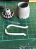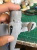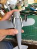 ID:	1101634and also made the horn linkages for the rudder , the wires will be added later. Ive now given it a coat of Halfords primer and sorted any bits that showed up , then sanded the rivets back a bit and gave it another one.Next i think I’ll attach the windscreen then have a look at the exhausts and collector ring.