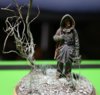 Painted dark brown then dry brushed with lighter brown and green followed by a heavy dry brush of off white