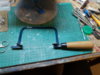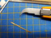I had left it over length because I needed to set it into the grip, and the obvious way is how it is done in real life by narrowing the blade into a tang. Now this blade is 1.82mm wide and I need to trim away 2/3rds of it somehow. I thought of filing but I was worried about bending it, so I turned to my trusty jeweller’s saw with a 60 TPI blade(teeth per inch for the continentals among us)