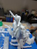 I’ve reconciled the creases up the sleeve and across the chest , and I ended up carving off the lace detail because of the twist to the torso. I also built up his bum a bit, as it’s not now compressed into the saddle.