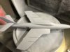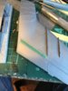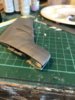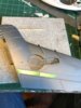 While I was waiting for the black gloss to fully harden I started on the photo etch airbrakes . The set supplies an outer and inner piece which have to be bent to shape and glued together. The kit airbrakes were accurate in as far as the location and number of holes BUT they are represented by raised dots whereas the real thing has holes. Drilling these out is impossible as they are too small and too numerous ( about 160 on each airbrake) plus it would be impossible to get them in straight lines. The photo etch set is designed for the Monogram kit so they are slightly smaller and have a different front profile and hinge position. I’m having them open anyway so the slight difference in size won’t be noticeable, there’s just the front edge to cut off straight and some new hinges to fit.Click image for larger version
