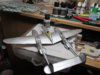 I've used Duraluminium to 'highlight' the control surfaces, engine panels and a few fuel caps. I've turned off my hobby light because it's to bright and doesn't let you see the effect. I think natural daylight will be the better light to see it in. So sorry for the quality of the light in the pictures.