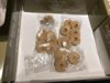 a blister pack with lots of small parts, screws and pins - most bits have fallen out their bubbles and gathered down one corner