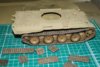 Time for another progress report, the wheels are on & the tracks on one side have been put on. I discovered that the box of magic tracks don't have enough spares for all the spare tracks on the hull sides, so I will have to use some from the original kit tracks, they aren't as good and have solid guide horns which I've had to drill out & fettle, pity they are too small to get a decent picture. This is the hull & tracks today, the picture are a bit stark due to me having to use flash on the camera.
