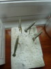 Under the fuselage are three blade aerials (I think that's what they are) which have given me some grief - they were too thick at the base to fit into the slot for them. The first one I did was tricky to hold, as they're only about 2.5mm square, and slightly tapered in two direction, but I managed to sand it down until it fitted. With that one in place I felt a bit more confident, started sanding the next one, which of course pinged out of the tweezers into the clutter on top of my desk. Had a quick look fit it, but there's no chance of finding something that small, so I made another from about half of the number tag on one of the sprues. When the glue had dried I took the fuselage down to the garage to paint it, and noticed a slot for another aerial to fit in! I've thrown out all the sprues except one as I've used all the parts, or so I thought, but I must have missed this one. So, another number tag, and a few minutes carving and sanding, and the last of the trio is fitted.