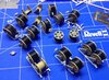 The parts on the left are for the back reels and the long ones are mirror imaged for the front reels. I had to order more 1,5mm Evergreen channel stock because I ran out. I started shaving off the backside of my 1,5mm I-beam stock to make more, but that was also a pain in the posterior so I stopped before I bled to death. After I finish painting the reel holders, I can glue the reels in place and they will be done.......Wheels!!! Yeah, I know you have heard this song and dance before but,