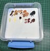 Unless I’m batch painting figures (usually twelve at a time) I use a wet palette. This is made from an airtight sandwich clip top box fitted with a wet palette base sheet and top sheet. You can buy the wet palette base from an art supplier, but they are pretty large. This one is about six inches square and doesn’t overwhelm my work space.