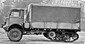 These are American M2 or M3 halftracks (it’s very hard to tell) that have had the cab cut down and the rear compartment removed and replaced by a lorry-style load bed. The louvres over the radiators are also gone and replaced by some simple bars and additional cooling air vents have been added to the sides of the bonnet.
