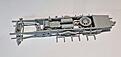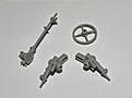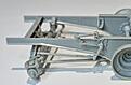 I opted to assemble the steering as per step 10 using a heated blade to ‘squish’ down the tops of the pins on each side of the tie bar (D8) so I could turn both wheels together before gluing them in position. The steering rod connection to the driver’s side hub bar is a strange one. The instructions in step 10 and the diagram in step 11 both show it as attached from below, but it interferes with the tie bar this way! I simply attached it from above.