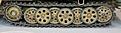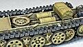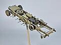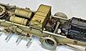 The basic engine and fuel tank were fixed to the chassis followed by the track wheels. The tracks then received their first weathering; a light speckling of dusty enamel colours. The track teeth and sprocket rollers were first burnished with a pencil before fitting.