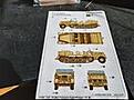 As Well as the good old fashioned assembly guide the over-view of the sprues reviles that there are no fewer than 14 sprues of tan plastic. TEN with the single link tracks, One clear, a fret of P.E. a bag with string and chain etc. 6 tyres A large part (rear bed of truck), and a partridge in a pear treeeeeee. phew. Oh a small decal sheet with the dials and number plates options. NO UNIT MARKS!