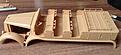 Exactly the way I did mine, But I glued the front fender piece to the rear fender piece on the chassis. I also started building the storage lockers and glued the pieces together. It looked like this,The way I would do it, would be to build the major parts off the chassis but put them in position on it without glue, and wait until the glue on the parts has set before removing them — and then, regularly dry-fit it again to see if new parts don’t interfere. This way you will get everything to line up but have the convenience the body being loose so you can fit parts to both it and the chassis much more easily.