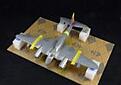I masked up all the identification stripes and the red on the tail. I wanted the overall metallic finish to be a bit weathered and faded but thought that a black pre-shade might be a bit over the top. I have used the Vallejo Metal Color Dark Aluminium in patches, hopefully when I give an overall coat of Aluminium the darker shade will show through and break up the finish. Hopefully my airbrush skills will be good enough not to obliterate the darker colour completely. My record with successful pre-shades is not good :rolling: