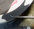 Another thing that amazes me is the state of the needle. Not in the habit of studying them under a magnifier. I have seen smoother nails than that! No wonder I have been fighting with her the last few jobs. Having now shafted the needle I think that New Airbrush is a lot closer than it was yesterday..