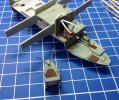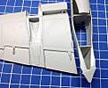 They were a bit fiddly, but with careful gluing in steps, they went well without any gaps that might require putty. The kit comes with 2 V-10s that are nicely detailed, but I decided to leave them out. To display them, you have to do some surgery to cut open the side doors. Maybe next time........In the pic above, you can see the triangle cutout and the triangle raised part on the wing. They slide over the wing with ease, but the damn tringle doesn't fit into the raised piece for a good fit. More scraping and all other forms of abuse hasn't worked so far. Again, you can't see under it to tell where the prob is either,