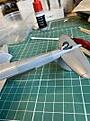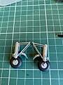 Been sorting some bits today . The undercarriage had a little problem in that one of the axles had been broken off in the box. I tried gluing this back with superglue but it just wasn't strong enough. Solution was to drill the u/c leg and put a brass tube in , with another larger tube over the top to make the axle. Ive also painted the white stripe on the spinners , after several failed attempts at masking this I resorted to hand painting it.