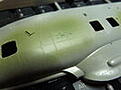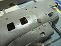 First - those distorted parts of the fuselage. While wondering what to do about them, I thought that just for a change I'd have a look at the instructions, and two of those partly-moulded windows are to be cut out and clear parts fitted. Click image for larger version