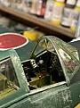 The aerial has now been added and the wires fitted . One other thing ive had to do is add the position light at the very end of the tail . This was a piece of stretched clear sprue sanded to shape and drilled to simulate the bulb .