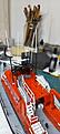 And as the stand was only comprised of the two end parts for the boat to be balanced on or glued to ive added two spars to make it all one piece and given it a coat of aluminium.also the stowage boxes have been painted and ive added some painted strips of 1mm tape.