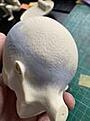 Or you could sand away the texture on the back of the head, creating a transition towards the textured front half so it looks like a natural variation rather than an obvious band of smooth skin. There's certainly no requirement for the whole head (or indeed any of the head) to be textured, looking at original artwork, which shows him to have a smooth bonce.