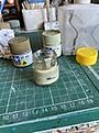 The final colour can go on now , a mixture of Tamiya paints . The colour of early naval zeros is about as conflicting and contentious as the endless arguments about sky type S or olive drab , there being endless viewpoints on the net all claiming theyre right. After looking at a lot of info , i decided this guys formula ( based on actual samples of aircraft ) was good enough for me . He gives a fairly fiddly mix of Tamiya colours to get the caramel brown / beige colour . I mixed this as per the ratios and it gives a good colour . Once I had this colour I could now match with my own simpler mix .