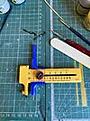 Bit more done today . After looking at the decals and paint guide I realised that there were more markings that I could mask up and paint. Theres a red band around the rear fuselage and two yellow bands across the tail .The easiest way to mask up a 8mm parallel band like this is to cut a piece of masking tape the width that you need then apply it to the model making sure its straight . You will get a bit of creasing at the back edge but this doesnt matter as its only a guide for the actual masking . Now cut some thinner strips of masking tape , about 1-2 mm and apply these upto the edges of the 8mm piece . Once done take out the 8 mm piece and finish masking up ( in this case after i had added a bit more masking i just used cling film to protect the rest of it . Same goes for the tail bands .Comment