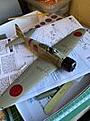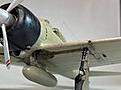 Decals ( all 13 of them ! ) now on and drying . Ive added the mesh screen to the scoop with the bias binding and given it a drybrush to highlight the weave . Next up get the airframe sealed with a satin finish - photos show these early zeros with quite a clean , polished finish . Then im going to add a brake line to the undercarriage before that goes on . Click image for larger version