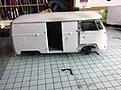 Got the body work put together, a slight issue with the doors, but fixable. The bottom hinge on the side door is missing. I’m sure I didn’t cut it off.