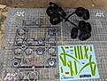 Wheels, tyres & decals. Most of the decals won't be used and I'm disappointed with the tyres. I'd expect an outback rig like this to sport something more chunky, but looking at the cost of replacing them they might have to suffice if I can't cut a better pattern into them.