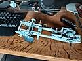 I drilled out all the holes in the 5th wheel mountings slider-rails...Chassis ready for a splosh of primer.
