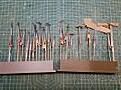 I used a number of processes, from a wet regular cotton bud, wet pointy cotton bud(Tamiya) to a plastic pointy thing, a cocktail stick and a couple of coloured pencils, black & brown.