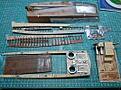 I have now built all the sub-assemblies and primed them with Halfords rattle can grey . I then pre-painted them in the colours I believe to be the raw materials i.e. plywood , timber, steel, rusty steel and bronze(rudder and propeller and wheel)