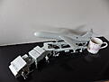 Other work completed are wheels now primed and painted with Revell Matt 9, all wheel axels now fitted in place together with vehicle tool boxes that sit behind the cab. Decals have been put on trailer and on the cab. Reason I have put them on before the model is completed is that I will be fitting some windows into the cab. I didn't want to be masking off and spraying varnishes etc when they were fitted so t just seemed easier to get the decals on and sealed in and then fit the cab out and just stick the roof on to complete. Thats the plan.