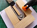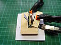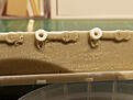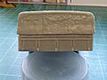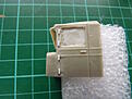 Cleaned up the cab. I put in a piece of firm foam to support the fragile resin. Added door hinges using little lengths of rod.