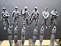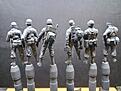 3 & 4 are a 30cal gunner and ammo carrier with packboards ( there should be two carriers, an assistant gunner and a corporal as squad leader,so I might do them later) ,and 5& 6 are medics (are they called Corpsmen in the Army-or is that just in the Marines?)with their own particular type of kit and a stretcher.