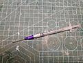Well there are build lines visible and some unexplained weird ‘coral growth’ on one of the panels but let’s put it together with some weld seams and see how it looks under paint. I had such trouble with the solder not sticking that I thought about other methods to represent the weld seams. I have tried green stuff already and found it difficult, but what I want is something similar but more easily controlled. I have some blunt syringe needles (and their syringes) that I bought for sculpting, so I squirted some Perfect Plastic Putty into one and then carefully squidged it into the grooves between the panels like a miniature b version of a silicone sealant gun