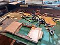 Loads of bit of wood, some bags with brass and white metal fittings...Turned wooden posts! And the Rope for the rigging.