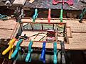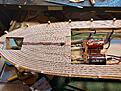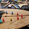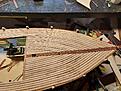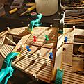 I am wishing I had use different planking as I first planed. The planking in the box is, shall we say naff. The darker narrow bits are a right lucky dip. different thickness, break just by looking at them wrong. The wider light ones look to be two different types of wood. some have an interesting pattern in the grain, others are like matchstick wood. Even after an overnight water bath they are not that willing to follow a shallow curve but rather start to break across the width! I hope the planking for the hull is a bit better.