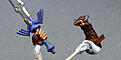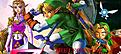 You start the game as a small boy (far right), during the game you become adult (center) and have to rescue Princess Zelda (left).
