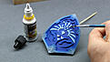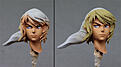 For the face I could use my airbrush, started with a dark flesh tone followed by a lighter sand color. Light gray for the eyes, black for the iris,