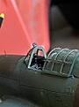 After fitting the undercarriage and aerial ,with wire , it was time to look at the final few tiny details. I added rudder control cables and the gunsight bead using toothbrush bristles , scratched a rear view mirror and the horseshoe shaped retractable step. I glazed the position light on the rudder and the morse code light on the top of the spine with pva canopy glue. Then it was time to unmask the canopy and fit it.Comment