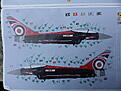 Well I am on day 4 of decals and still a load to go. Today I did some repair work to the fuzz. When I put the large underwing decals on in some places the decal encroached onto the fuzz wall where the wing joins the fuzz. I learned a lesson many moons ago not to try and cut and remove the fixed decal and that it was far less painfull just to paint over them where required. I also learned a painful lesson with my Red Arrow Hawk not to put masking tape onto a decal even if its been fixed and varnished over there is a danger of damaging the decal. So for this touch up I cut pieces of paper to the required shape and attached them only onto areas where there was no decal. A light spray and the job was done.