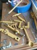 Got the first bits started , the three assault shields , which are basically like boards on wheels! I primed all the parts on the sprues with matt black and after detaching and cleaning up are getting a few coats of vallejo desert yellow. On top of this I will be using a highly thinned wash of vallejo woodgrain , which is a translucent dark brown . This should settle in the grain and give the effect im after plus darken the colour .Ive also assembled most of the parts for the catapult which have been painted too ready for assembling . Heres a few pics with a washed assault shield at the side of one that has just been painted and is awaiting the wash , cheers tonyClick image for larger version
