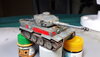 As thoes that have followed this little buid know it was all about the set of decals I bought a few years ago depicting a captured tiger at kursk covered on one side in graffiti, I should have sat up and noticed how thin and brittle the crosses and numbers were a couple of them breaking but I managed to float them back together on the model. I kept any weathering to a minimum because obviously the graffiti was daubed over it so in effect the decals of the graffiti went on when the model was as good as done ,this was where it all went wrong one of them even broke up in the water did the best I could with the rest ,am now thinking of trying to remove them or dumbing them down wit h something a bit less post office red.