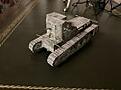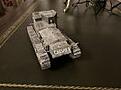 it was painted using Tamiys acrylic - my home made mix for the WW1 colour - i then added a few, not many, spots of oil paint ( browns and greens)which were worked using an old brush to blend it. This breaks up the flat base colour. After a couple of nights in the airing cupbord a wash of burnt umber oil paint to enhance the seam lines and details. After leaving it to dry for a couple more days in the airing cupboard I dry brushed it with various shades of lighter green.