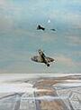 Whilst trying to eject from his stricken Spitfire, his right prosthetic limb wedged behind a control pedal. He eventually managed to fall free, but his 'Leg' remained in the aircraft.