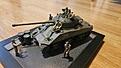 For Geoff's D-Day GB, I've built a 1/48 Sherman Firefly from Tamiya, along with a small scene to go with it. It depicts the Sherman and its crew at rest in the days following D-Day. An elated farmer has seen the Allied troops moving into town, and has fetched a bottle of his finest red from the cellar. He approaches the first vehicle in the column, an offers it to the crew, expressing over and over: