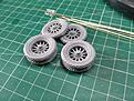 The wheels and tyres have been assembled and given 'flats' so that they look like there is some weight to the vehicle instead of the ballet dancer tip-toe stance...