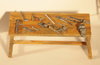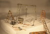 Now for the tools, great fun painting these, back and forward from one to another , prim , top coat . dry brush. Took nearly a full day. Ladders and table were done in OIL yes STEVE Oil . Still a bit tacky after about 3 days.